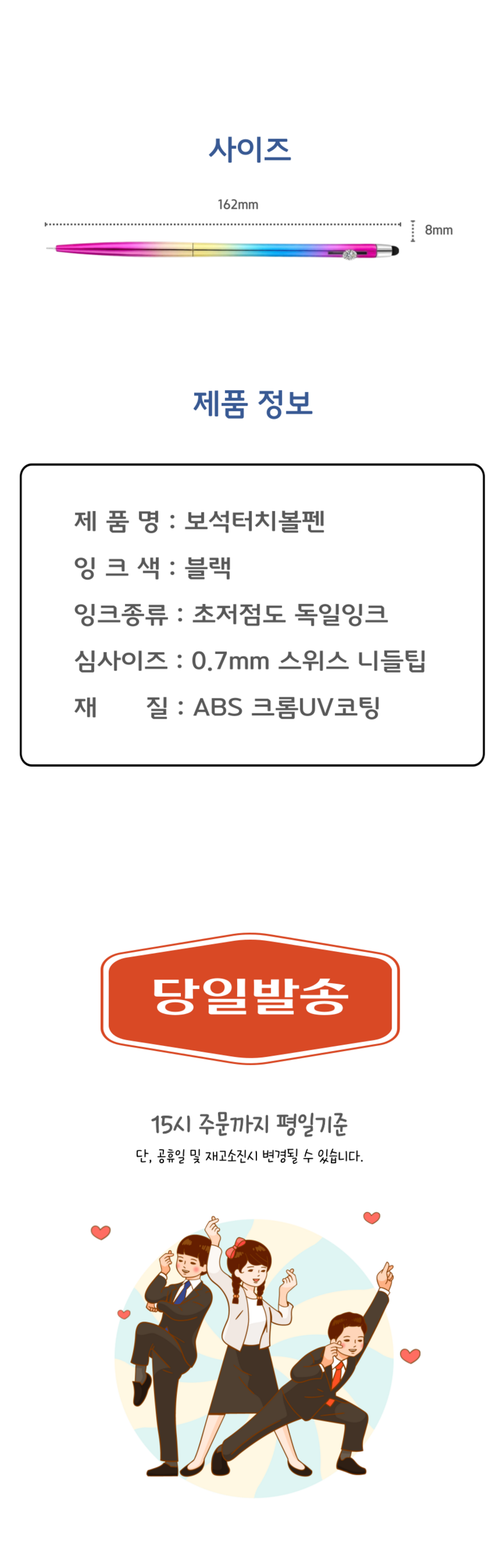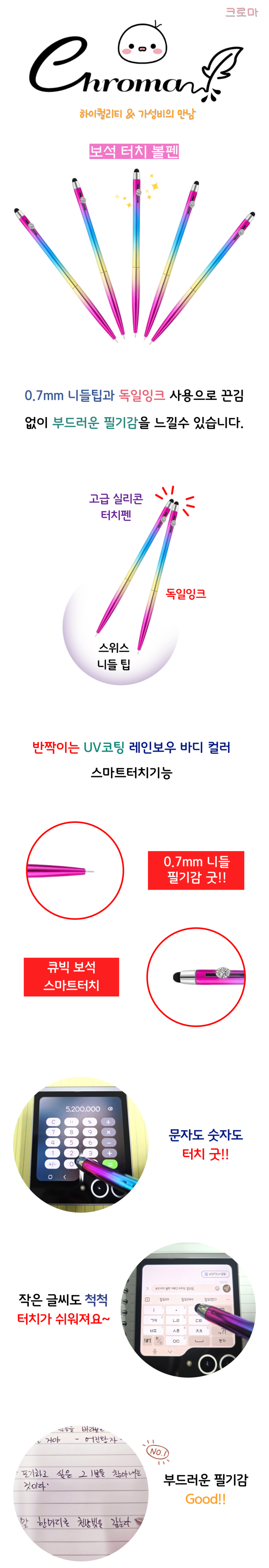 | 품명 및 모델명 | 레인보우보석터치볼펜 | 인증/허가 사항 | 해당사항없음 |