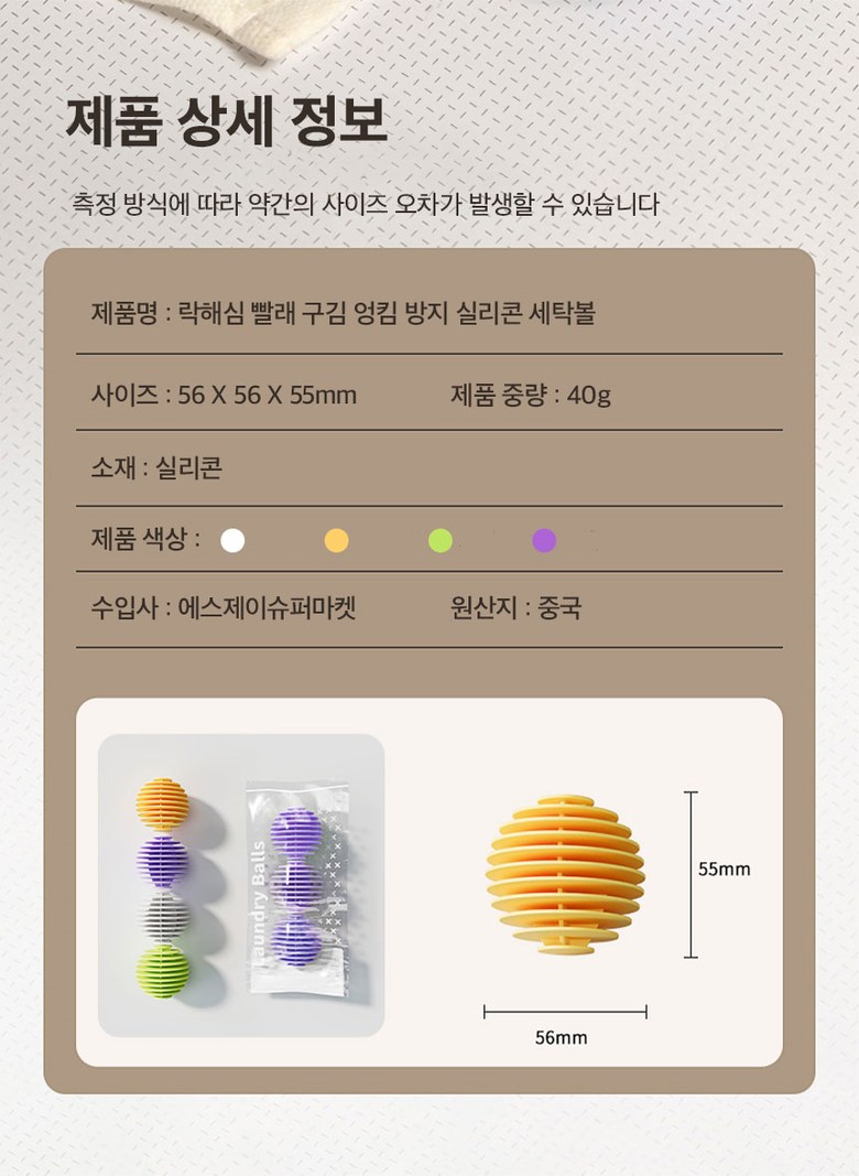 | 품명 및 모델명 | 락해심 빨래 구김 엉킴 방지 실리콘 세탁볼 | 인증/허가 사항 | 해당없음 |