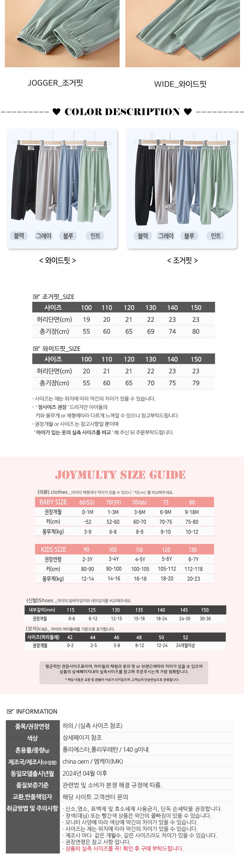 | 품명 및 모델명 | 아이스 쿨 아동 와이드 조거팬츠바지 2종 1개_와이드핏_블랙_150 | KC 인증정보 | 유/KC마크 |