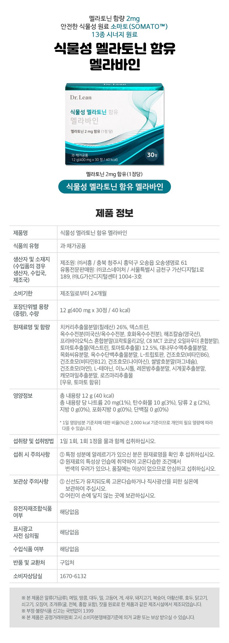 | 원료명 및 함량 | 상품 상세페이지 참조 | 영양정보 | 상품 상세페이지 참조 |
