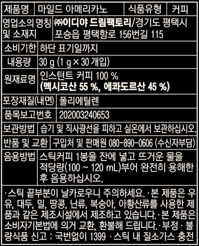 - 맛/향: 아메리카노