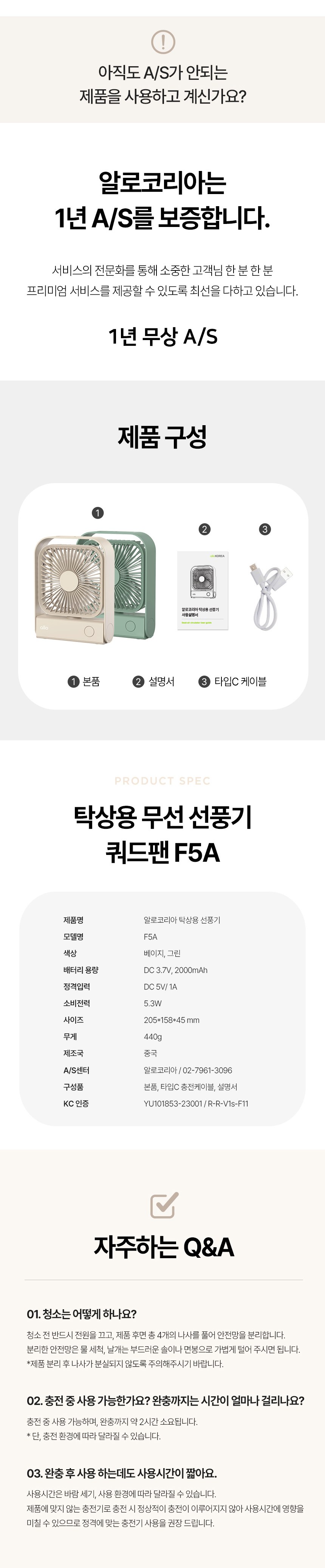 | 품명 및 모델명 | 알로코리아 탁상용 선풍기 / F5A | KC 인증정보 | 본품:R-R-V1s-F11 , 내장배터리: YU101853-23001 |
