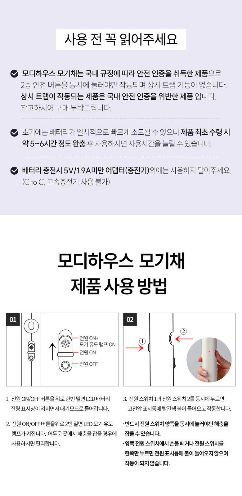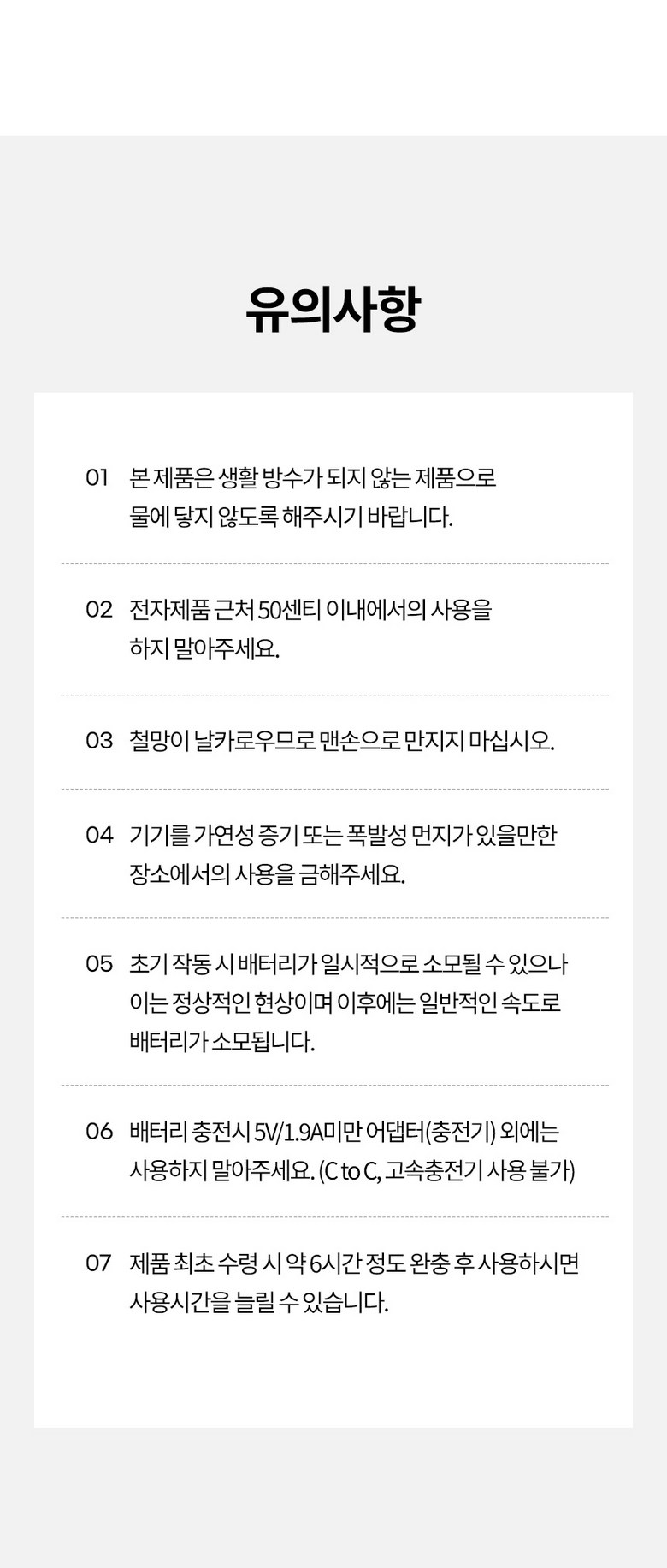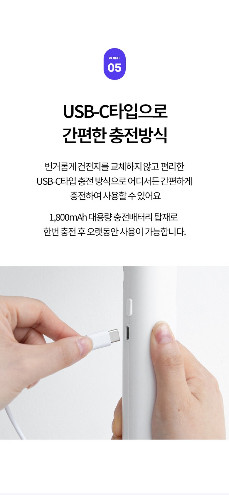 - 전원공급방식: USB 충전식