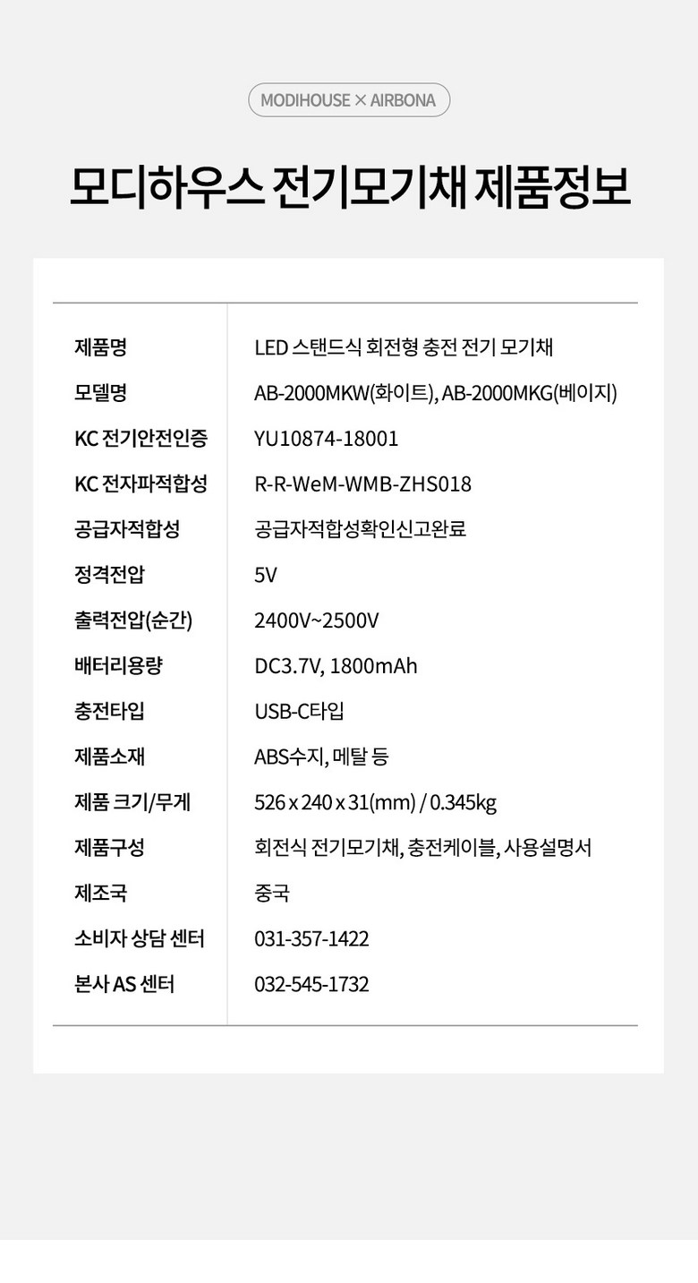 | 품명 및 모델명 | AB-2000MKW,AB-2000MKG | KC 인증정보 | YU10874-18001 / R-R-WeM-WMB-ZHS018 |