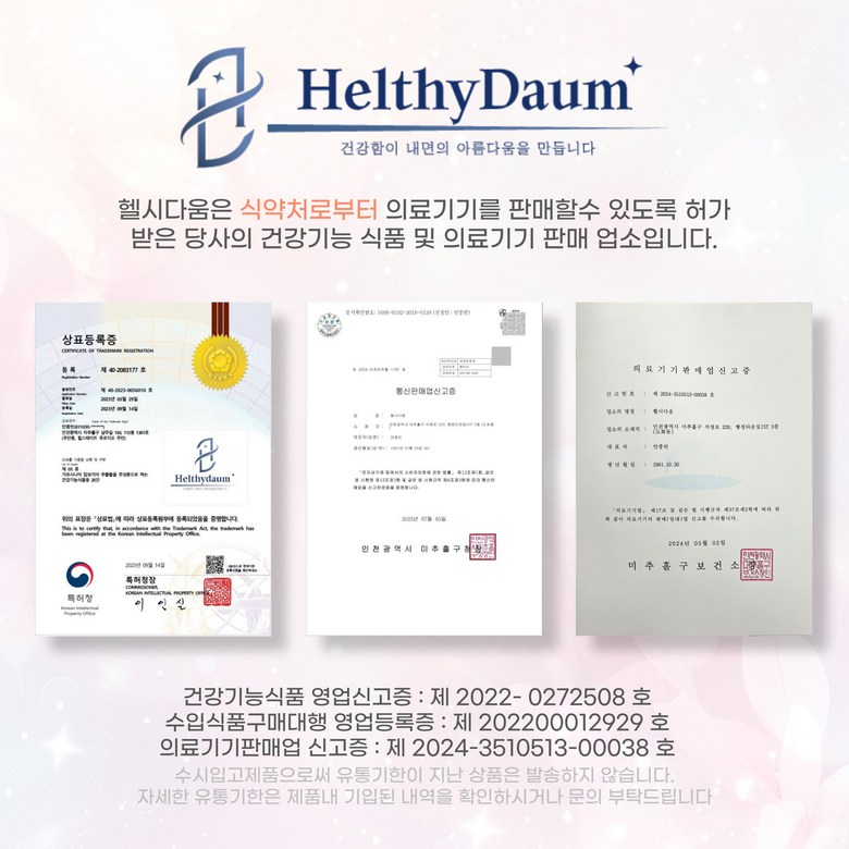 상호/대표자 | 헬시다움 / 안종빈 | 사업장 소재지 | 인천광역시 미추홀구 석정로 229 (도화동) 5층 |