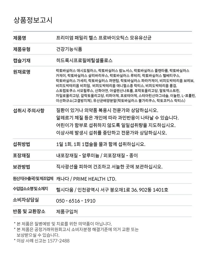 | 원료명 및 함량 | 상품 상세페이지 참조 | 영양정보 | 상품 상세페이지 참조 |