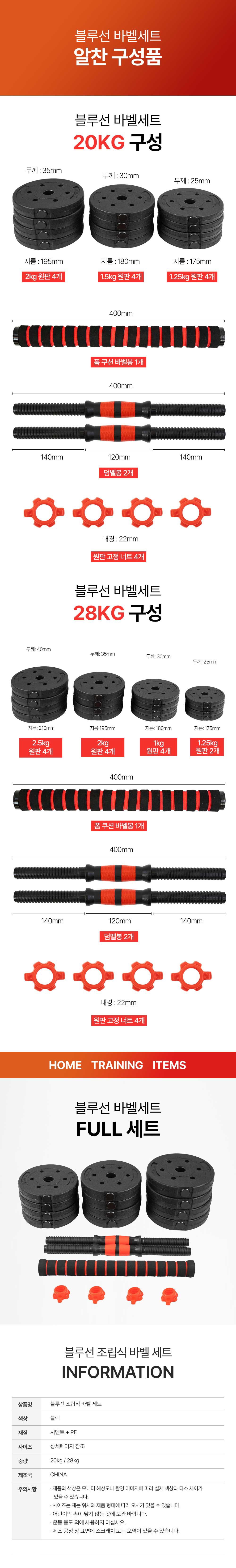 | 품명 및 모델명 | 블루선 아령 덤벨 운동 바벨 세트, 1세트, 블랙, 28kg | KC 인증정보 | 해당없음 |