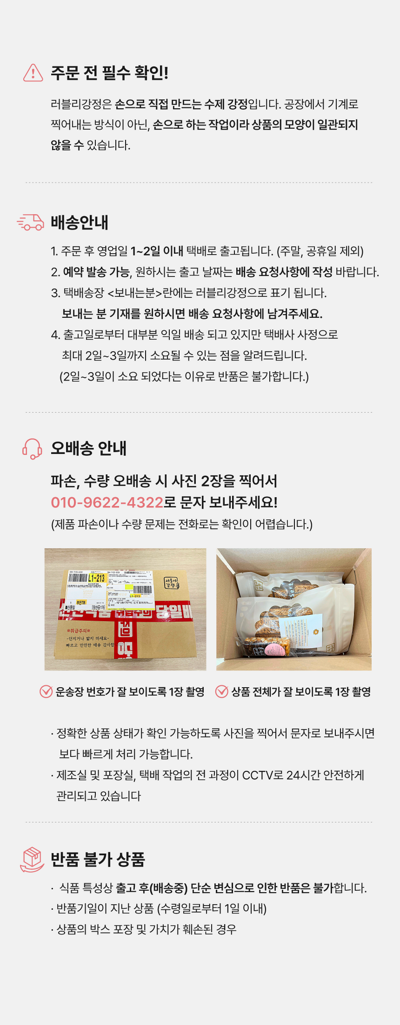 - ㆍ모니터 해상도의 차이로 인해 색상이나 이미지가 실제와 달라, 고객이 단순 변심으로 교환/반품을 무료로 요청하는 경우