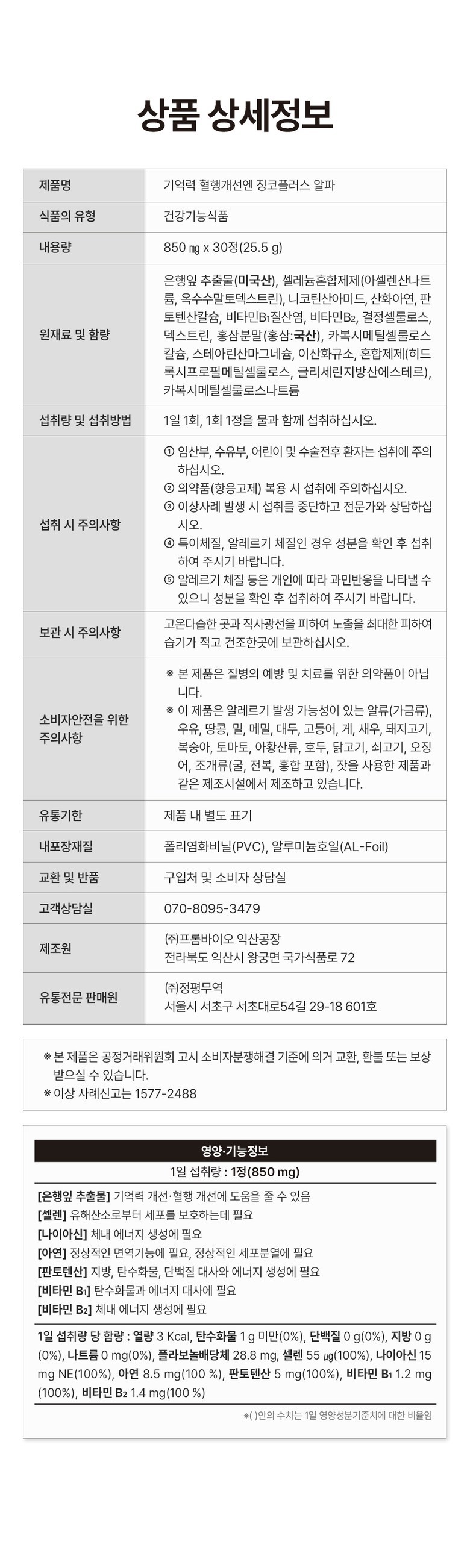 | 원료명 및 함량 | 상품 상세페이지 참조 | 영양정보 | 상품 상세페이지 참조 |