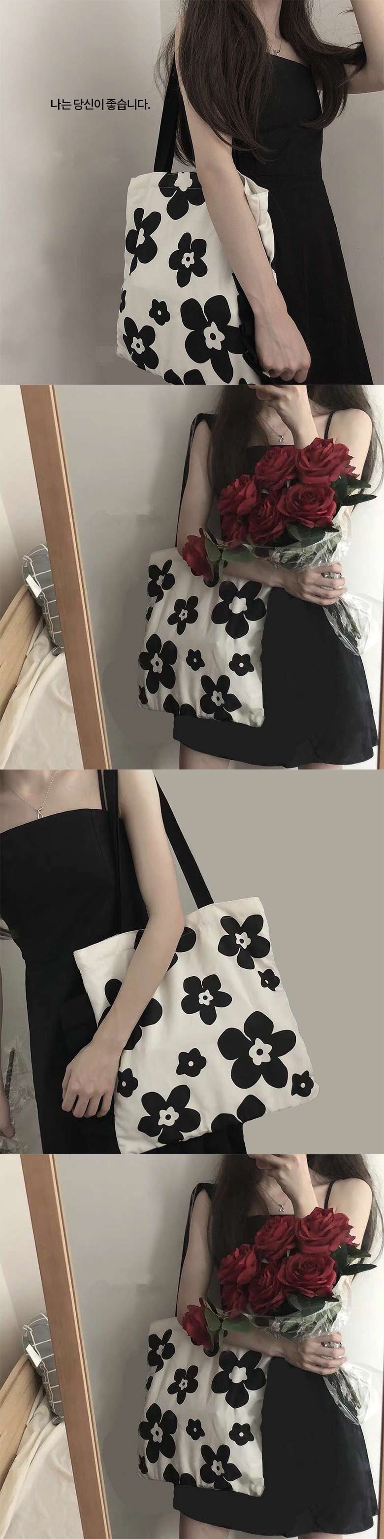 TOONIES 여성 여름 대용량 플라워 숄더 캔버스백