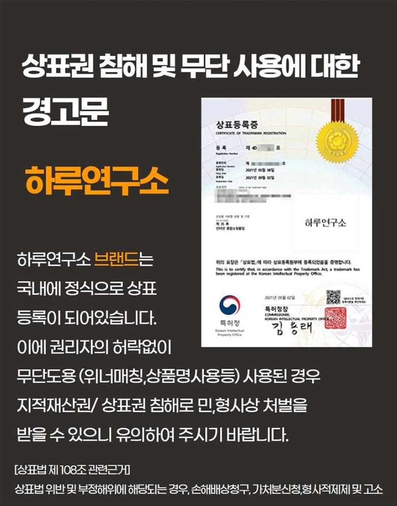 | 치수 | 상품 상세페이지 참조 | 제조자(수입자) | 하루연구소 협력사 |