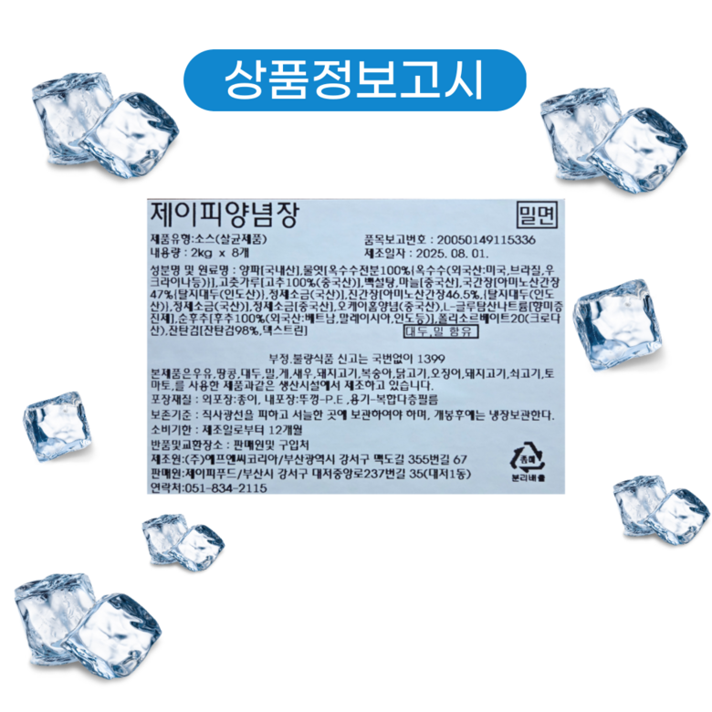 상호/대표자 | 제이피푸드 / 손웅진 | 사업장 소재지 | 부산광역시 강서구 대저중앙로237번길 35 제이피푸드 |