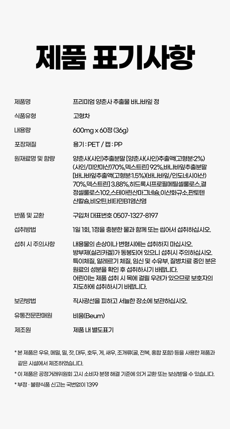 | 제조연월일, 소비기한 또는 품질유지기한 | 업데이트 예정 | 세부 품목군별 표시사항 | 상품 상세페이지 참조 |