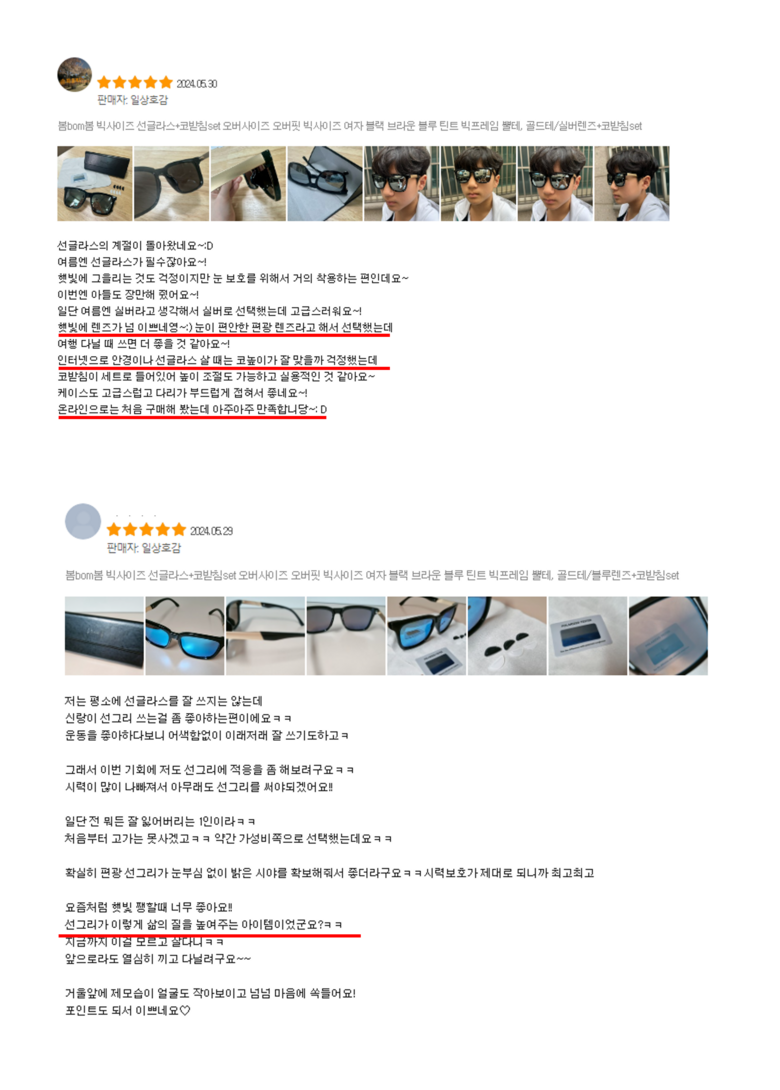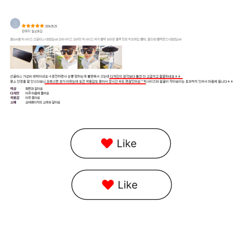 동일한 상품에 대해 작성된 상품 리뷰로, 판매자는 다를 수 있습니다.