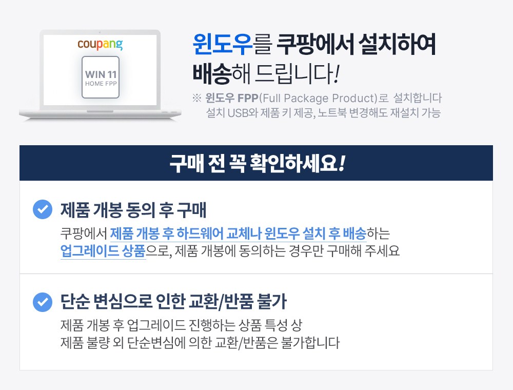 - 구매한 상품의 취소/반품은 마이쿠팡 구매내역에서 신청 가능합니다.