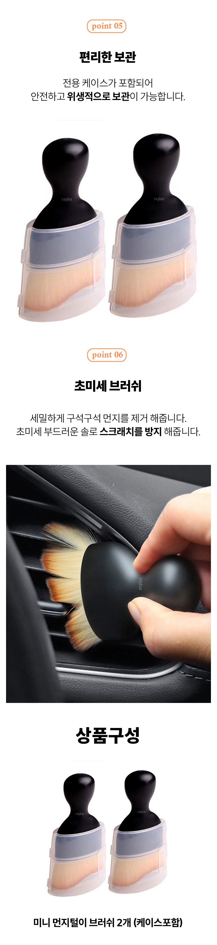 | 품명 및 모델명 | 앙플러스 차량 먼지 털이 제거 미니 브러쉬 단일색상 2개 | 인증/허가 사항 | 해당없음 |