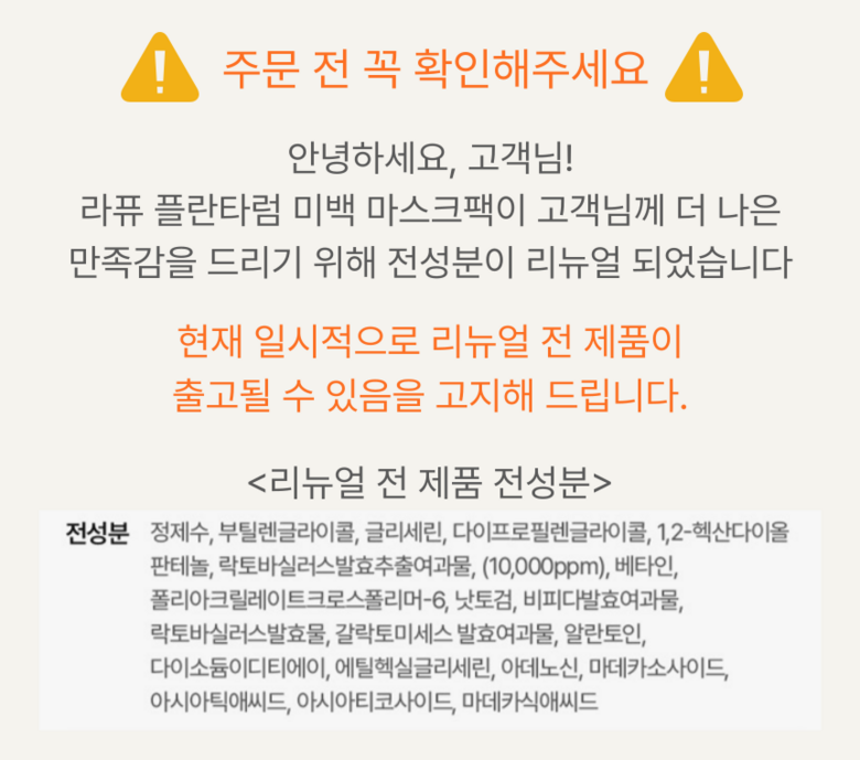 라퓨 플란타럼 미백/주름 기능성 마스크팩 100매