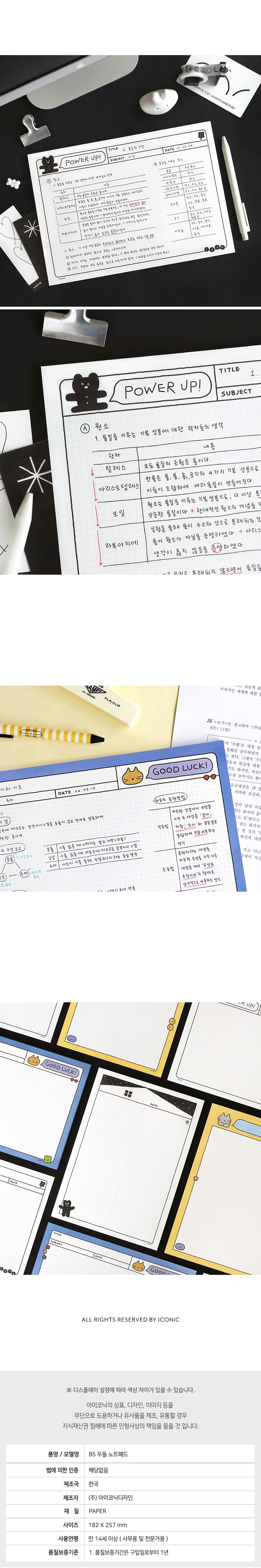 | 품명 및 모델명 | 아이코닉 B5 두들 노트패드 떡메모지 공책 | 인증/허가 사항 | 해당없음(만 14세이상) |