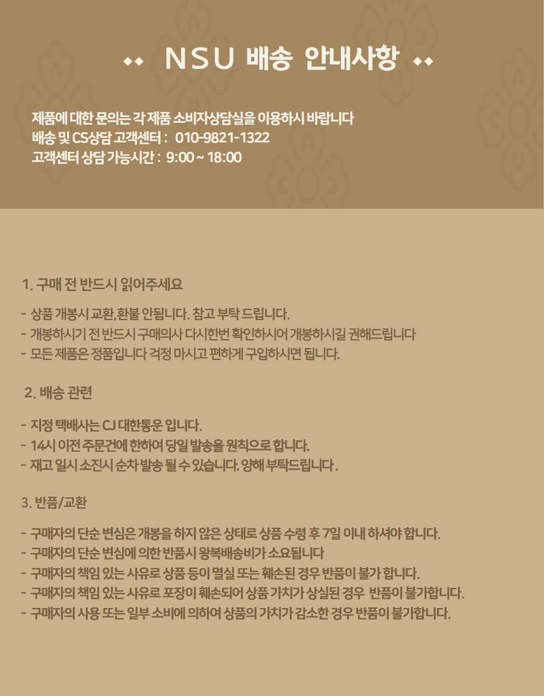 - ㆍ모니터 해상도의 차이로 인해 색상이나 이미지가 실제와 달라, 고객이 단순 변심으로 교환/반품을 무료로 요청하는 경우
