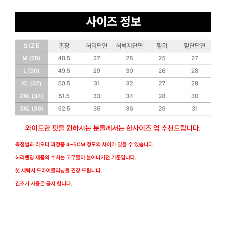 | 치수 | M(28), L(30), XL(32), 2XL(34), 3XL(36) | 제조자(수입자) | 일이오 협력업체 |