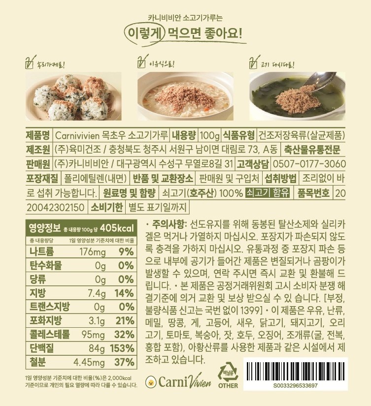 | 생산자 및 소재지 | 컨텐츠 참조 | 제조연월일, 소비기한 또는 품질유지기한 | 업데이트 예정 |