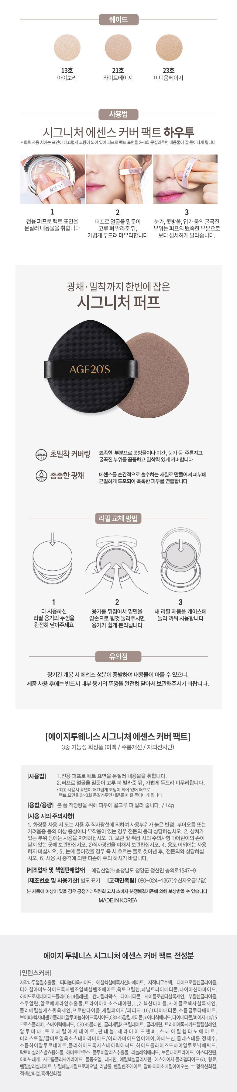 에이지투웨니스 시그니처 에센스 커버 팩트 인텐스 케이스 + 리필 14g 2p 세트, 21호, 2개