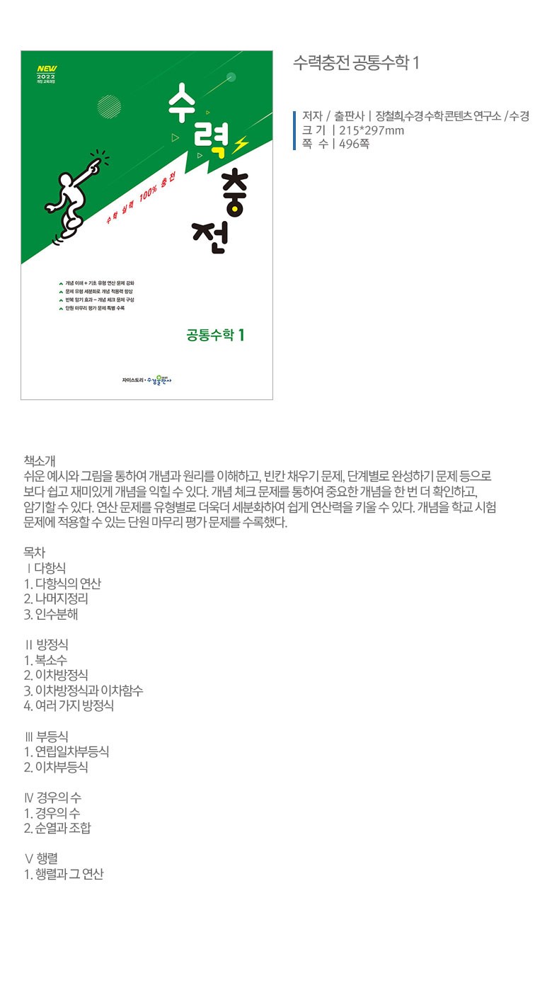 | 도서명 | 수력충전 공통수학1 | 저자, 출판사 | 컨텐츠 참조, 수경출판사 |