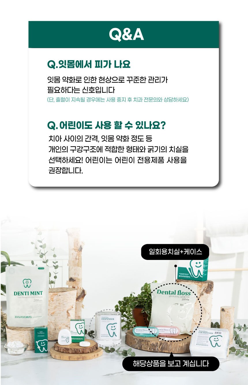 | 품명 및 모델명 | 덴티본조르노 일회용 치간 치실 리필용 | 인증/허가 사항 | 해당없음 |