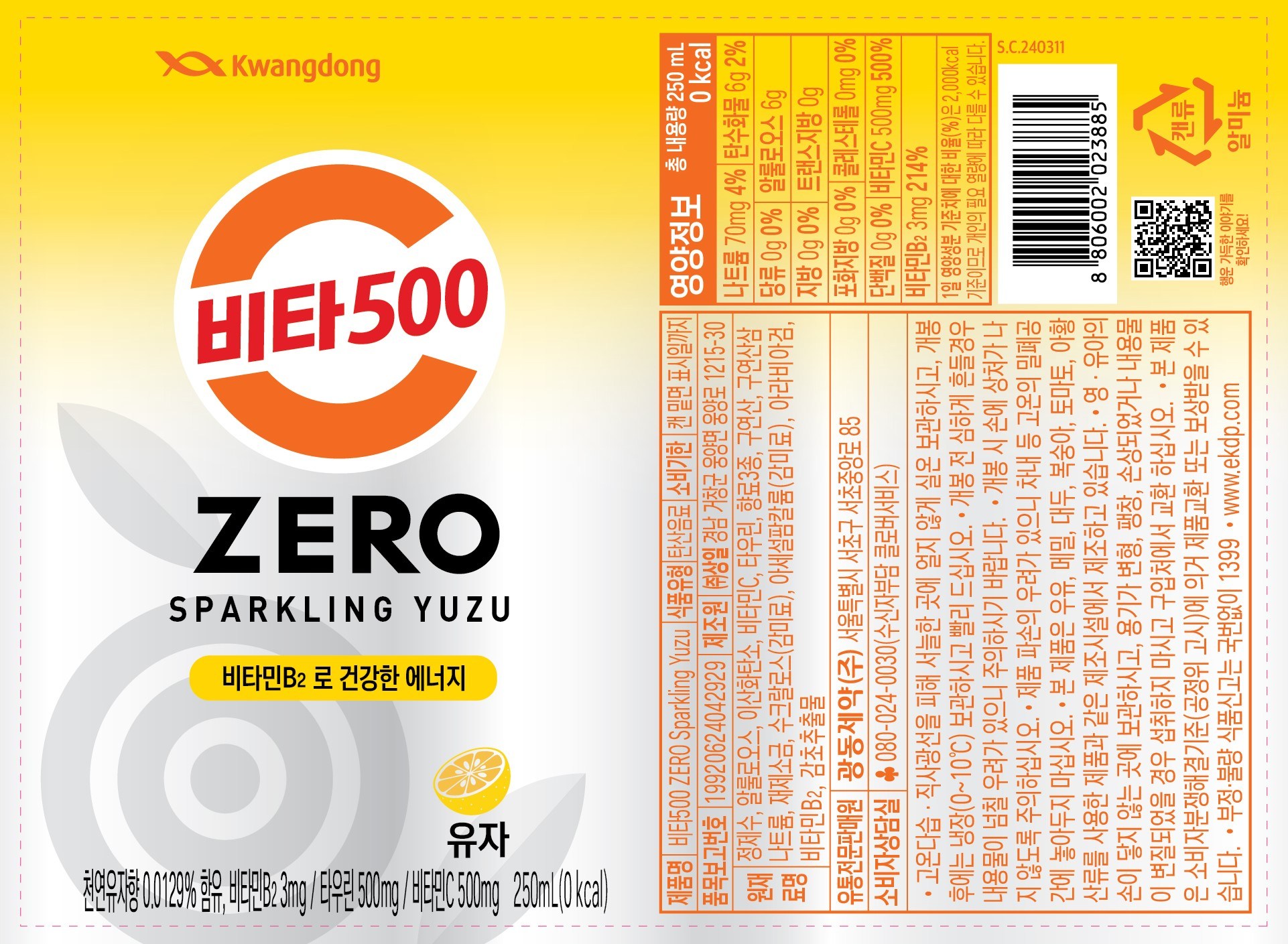 | 제품명 | 비타500 ZERO Sparkling Yuzu | 식품의 유형 | 컨텐츠 참조 |