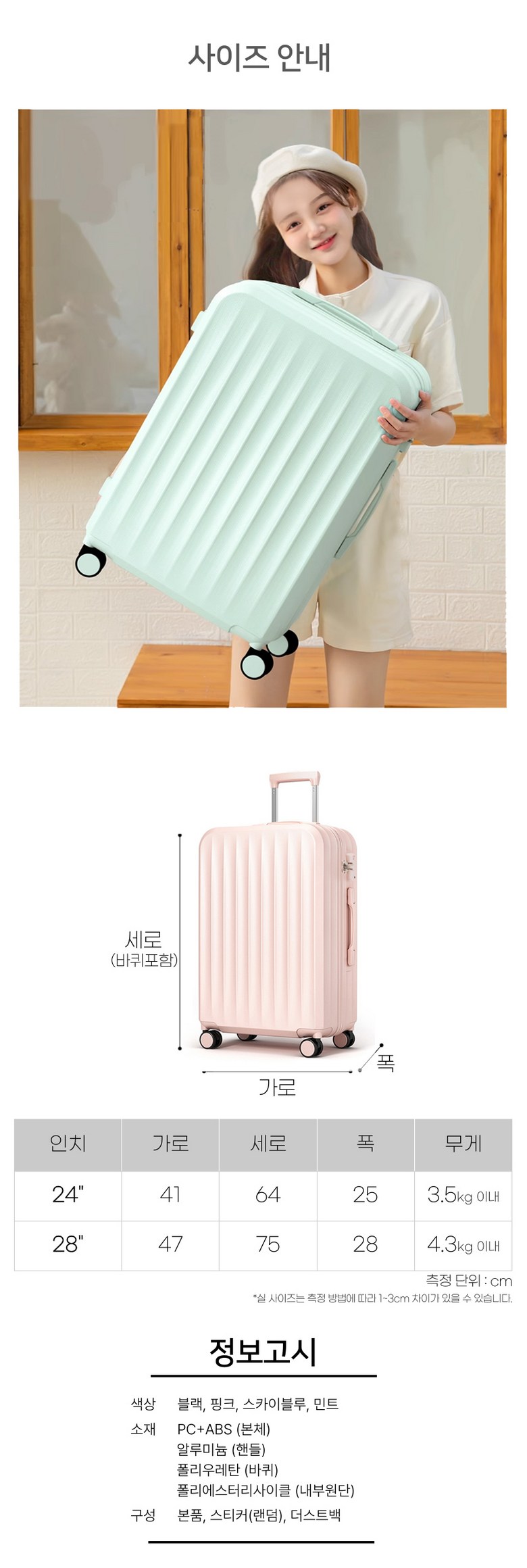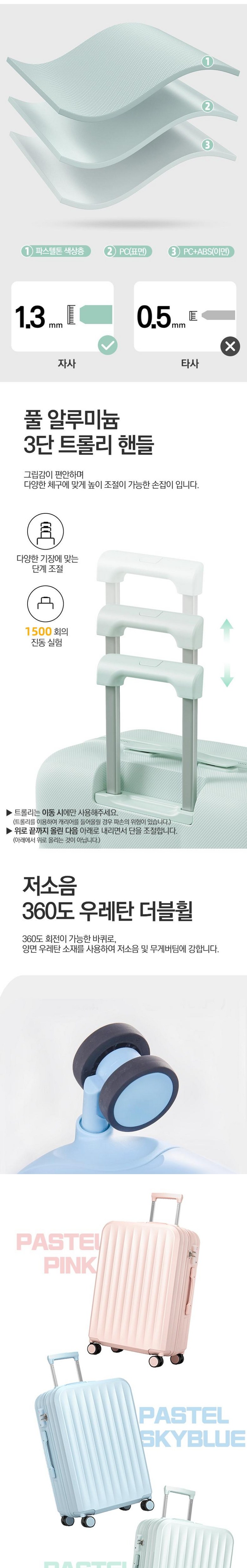 | 종류 | 여행용캐리어 | 소재 | ABS+PC,알루미늄,폴리에스테르,폴리우레탄 |