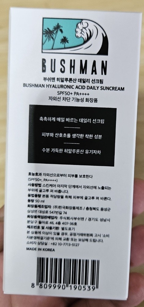 | 화장품제조업자, 화장품책임판매업자 및 맞춤형화장품판매업자 | (주)한국화장품제조 / 주식회사부쉬맨 | 제조국 | 대한민국 |