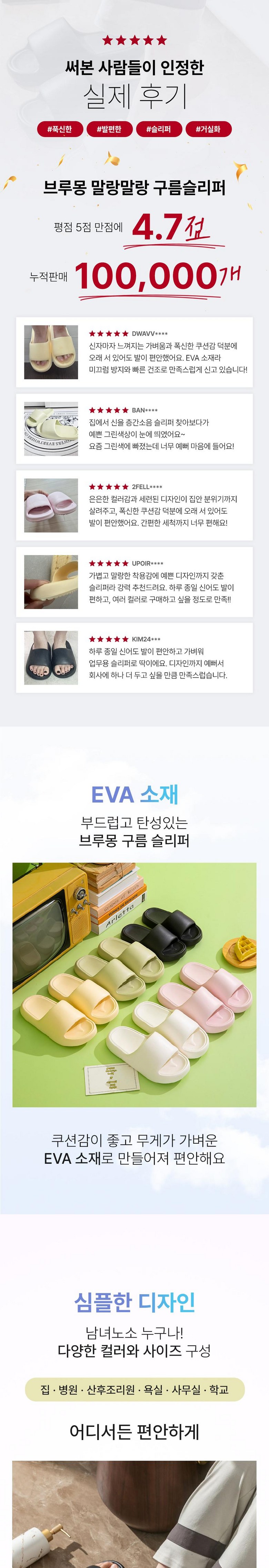 | 제품의 주소재(운동화인 경우에는 겉감,안감을 구분하여 표시) | eva | 색상 | 상품 상세페이지 참조 |