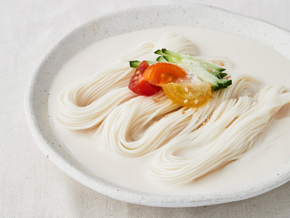 2. 삶은 소면에 부어, 고소한 콩국수를 만들어보세요.
