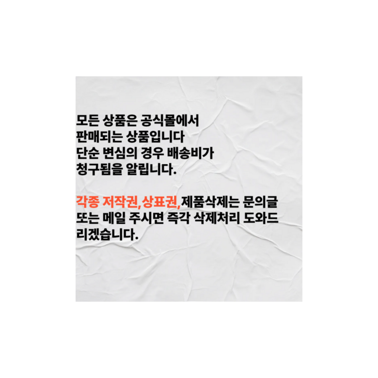 - ㆍ모니터 해상도의 차이로 인해 색상이나 이미지가 실제와 달라, 고객이 단순 변심으로 교환/반품을 무료로 요청하는 경우