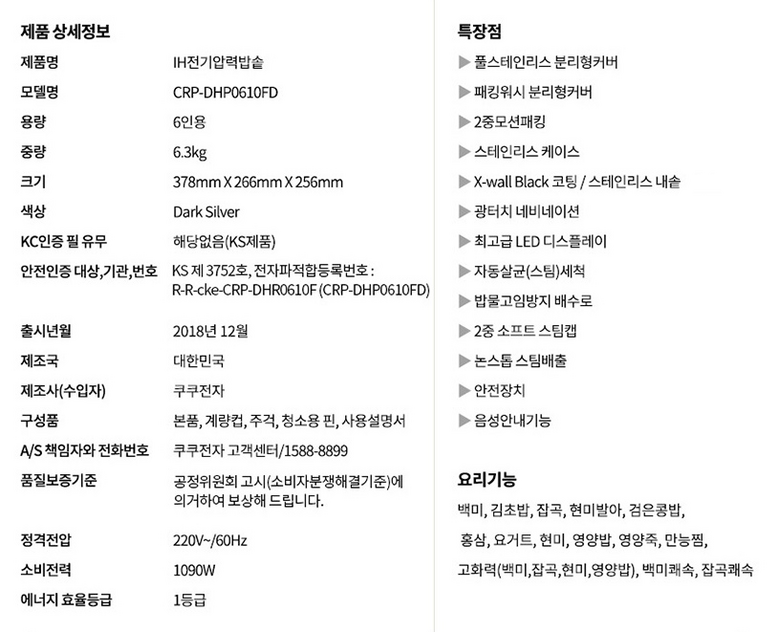 쿠쿠 6인용 IH전기밥솥