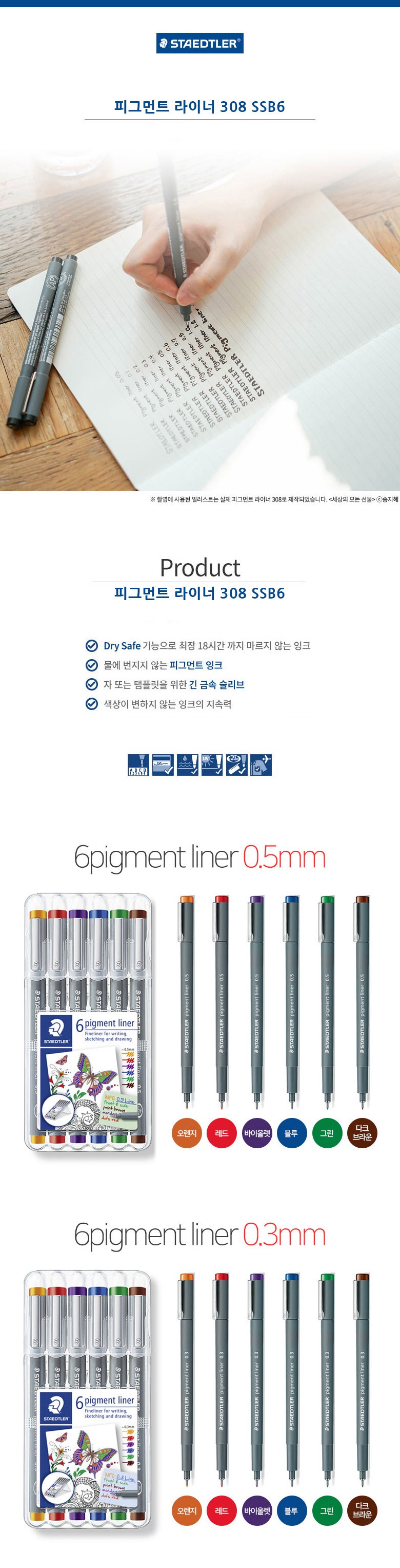 | 품명 및 모델명 | 스테들러 피그먼트 라이너 308SSB6 칼라 0.5mm | 인증/허가 사항 | 해당없음 |