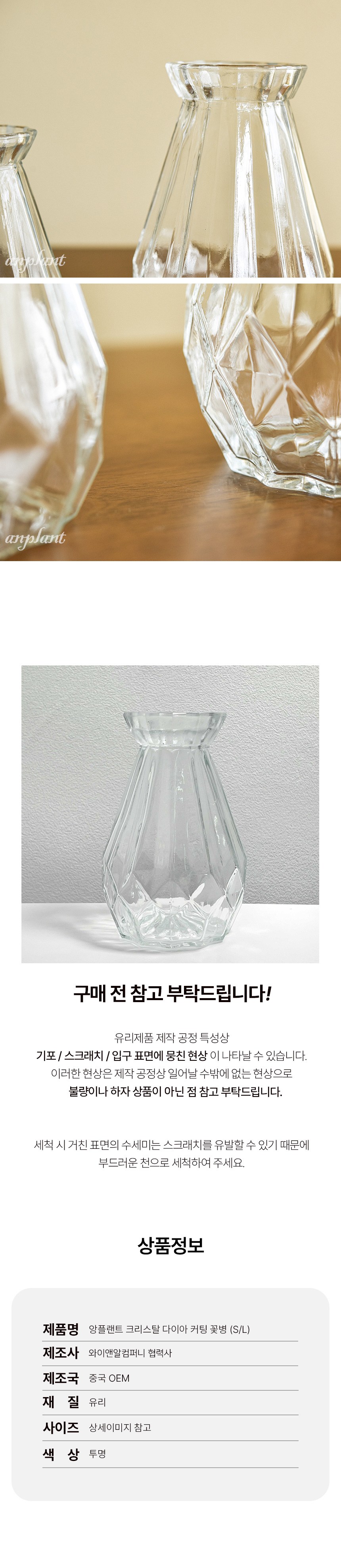 | 품명 및 모델명 | 앙플랜트 크리스탈 다이아 커팅 꽃병 | 인증/허가 사항 | 해당없음 |