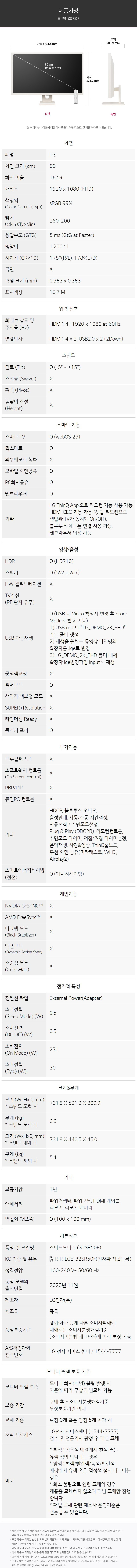 | 품명 및 모델명 | LG전자 FHD MyView 스마트 모니터 방문설치, 32SR50F | KC 인증정보 | 본품 : 유/KC마크,R-R-LGE-32SR50F , 건전지 : B053R135-2001 |