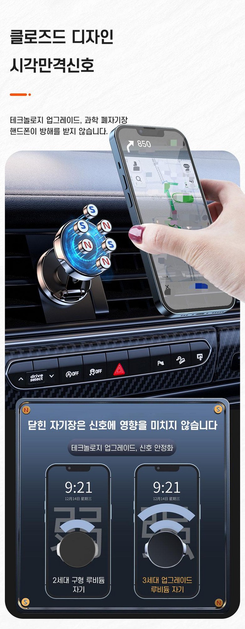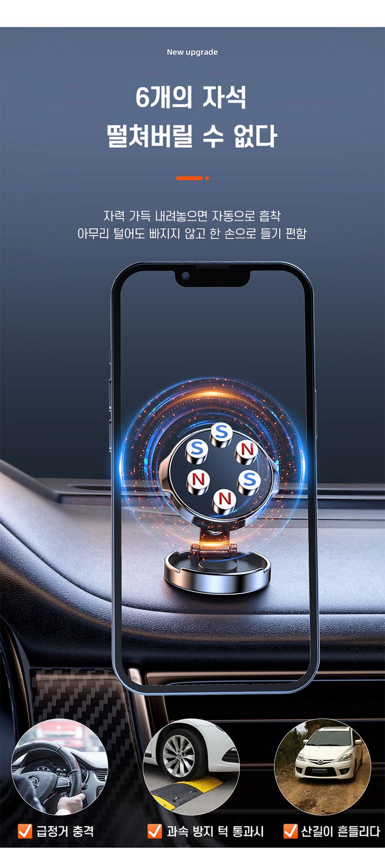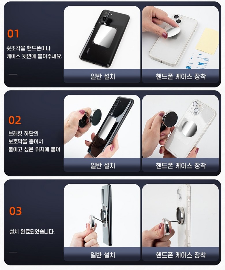 제공된 금속판을 휴대 전화 뒷면에 고정하여 강력한 자력 흡인력을 확보해야 합니다.