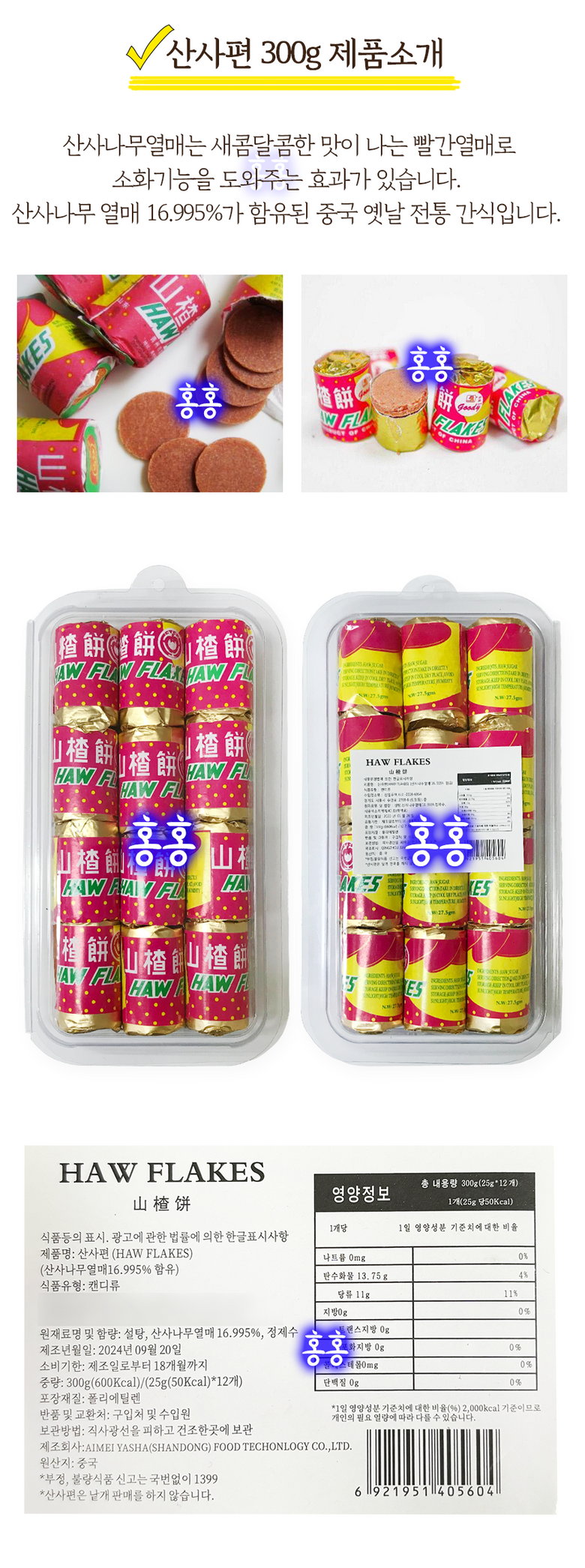 | 포장단위별 내용물의 용량(중량), 수량 | 상품 상세페이지 참조 | 원재료명 및 함량 | 설탕, 산사나무열매 16.995%, 정제수 등 |