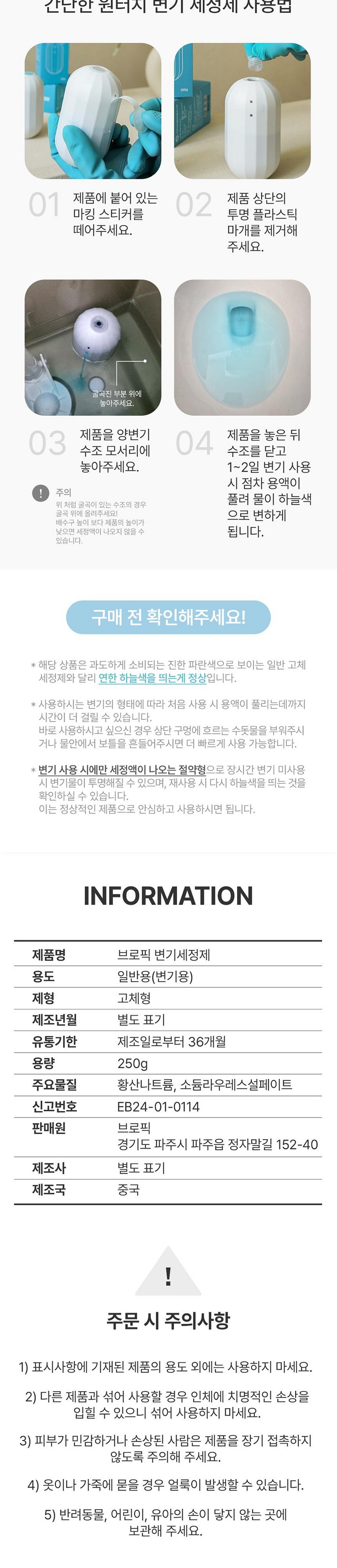 | 품목 및 제품명 | 변기세정제 | 용도(표백제의 경우 계열을 함께표시) 및 제형 | 일반용(변기용) |