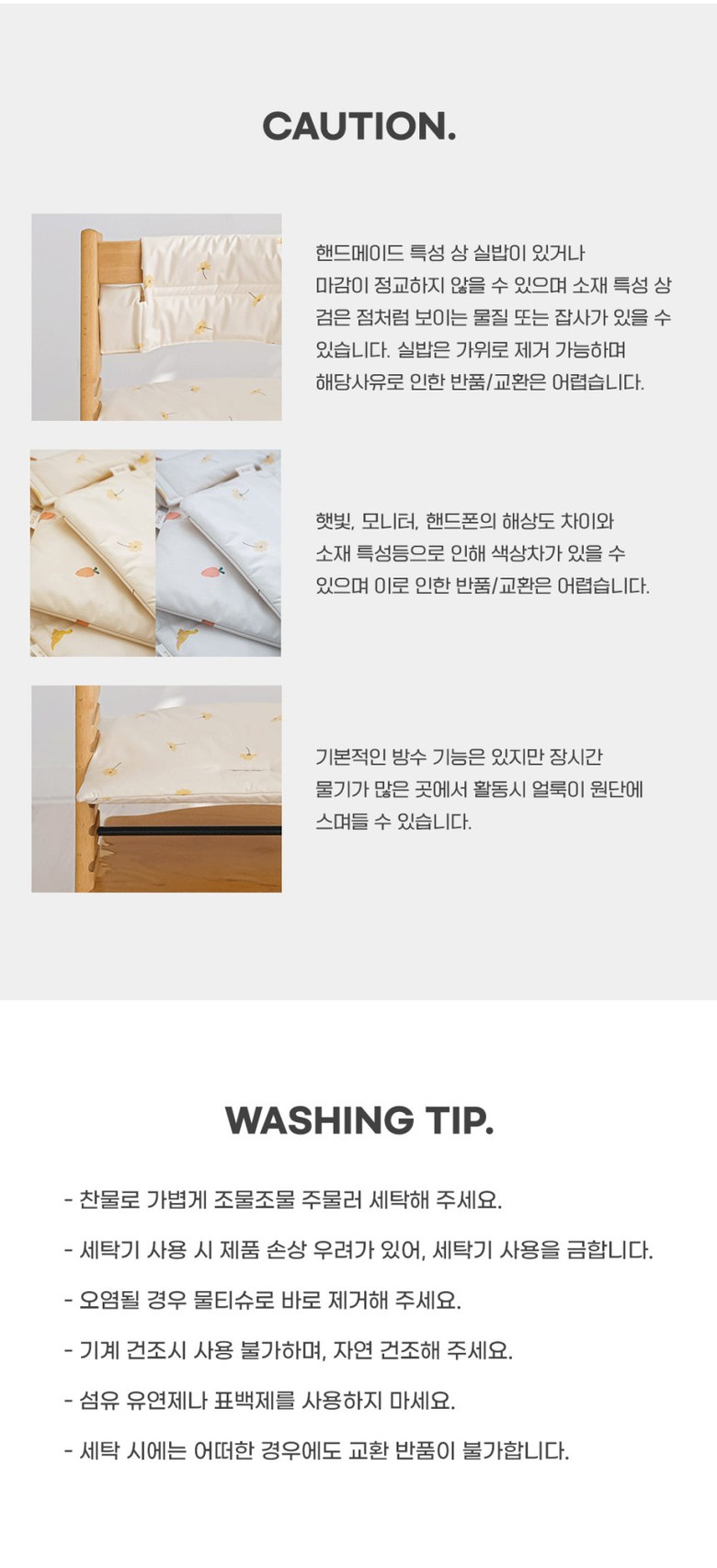 - ㆍ모니터 해상도의 차이로 인해 색상이나 이미지가 실제와 달라, 고객이 단순 변심으로 교환/반품을 무료로 요청하는 경우