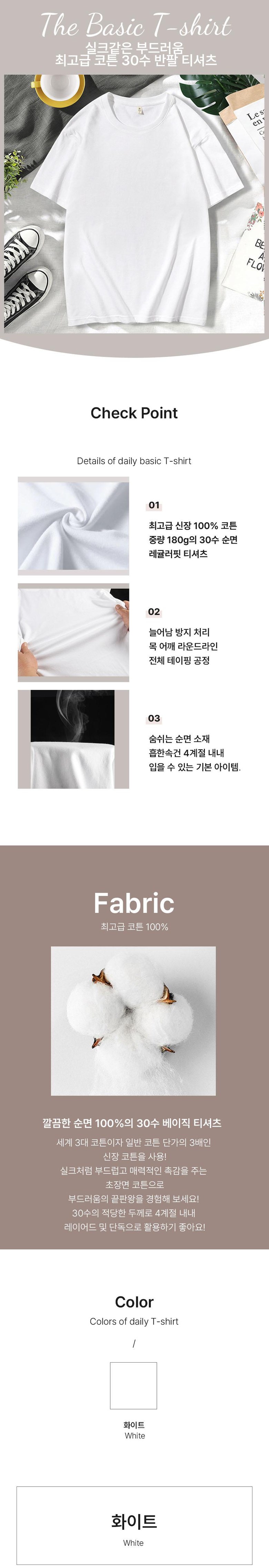 | 품명 및 모델명 | 최고급 순면 30수 레귤러핏 기본 반팔티 | 인증/허가 사항 | 해당없음 |
