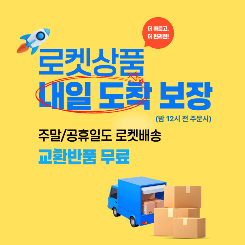 | 교환/반품 신청 기준일 | ㆍ단순변심에 의한 로켓배송 상품의 교환/반품은 제품 수령 후 30일 이내까지, 교환/반품 제한사항에 해당하지 않는 경우에만 가능 (교환/반품 비용 고객부담) ㆍ상품의 내용이 표시·광고의 내용과 다른 경우에는 상품을 수령한 날부터 3개월 이내, 그 사실을 안 날 또는 알 수 있었던 날부터 |