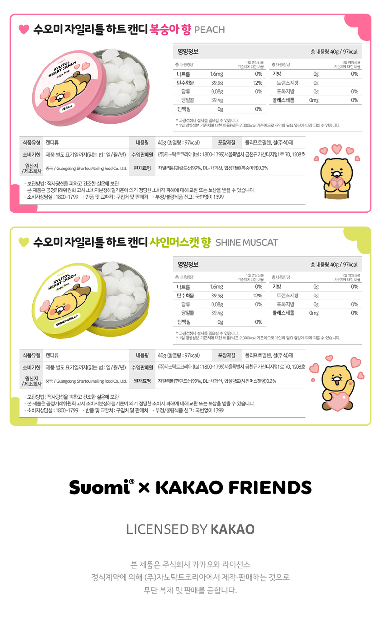 | 제품명 | 수오미 자일리톨 캔디 | 식품의 유형 | 캔디류 |