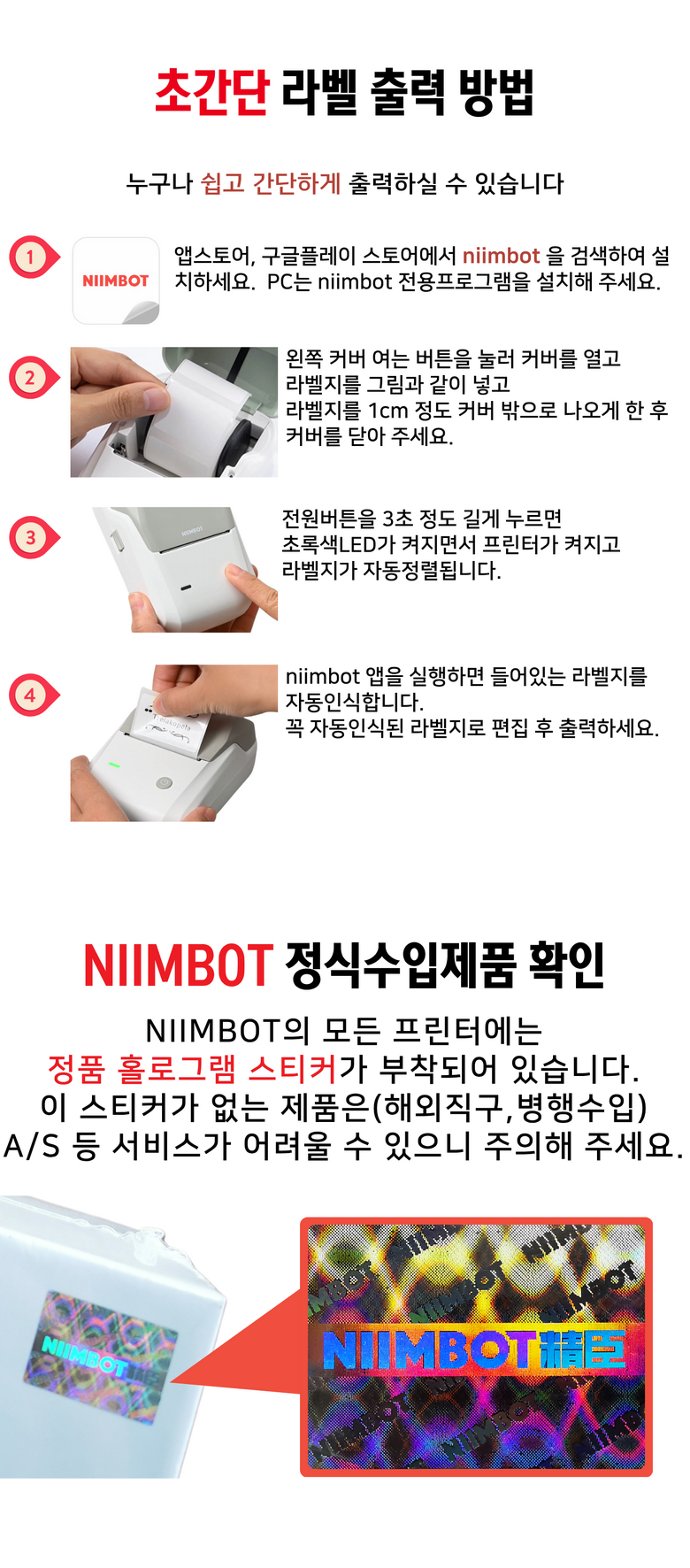 | 출시년월 | 2024.5 | 제조자(수입자) | NIIMBOT (블루컴즈 주식회사) |