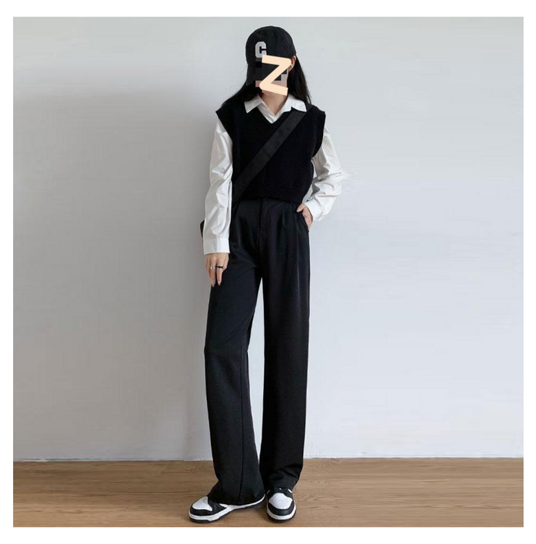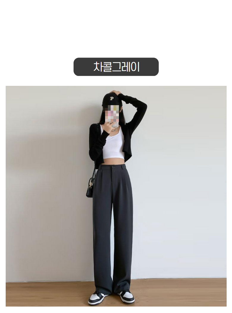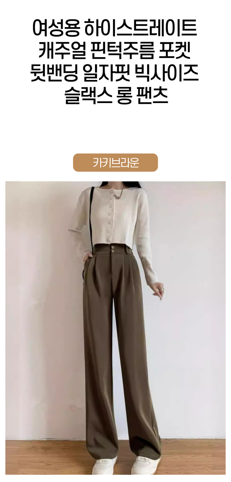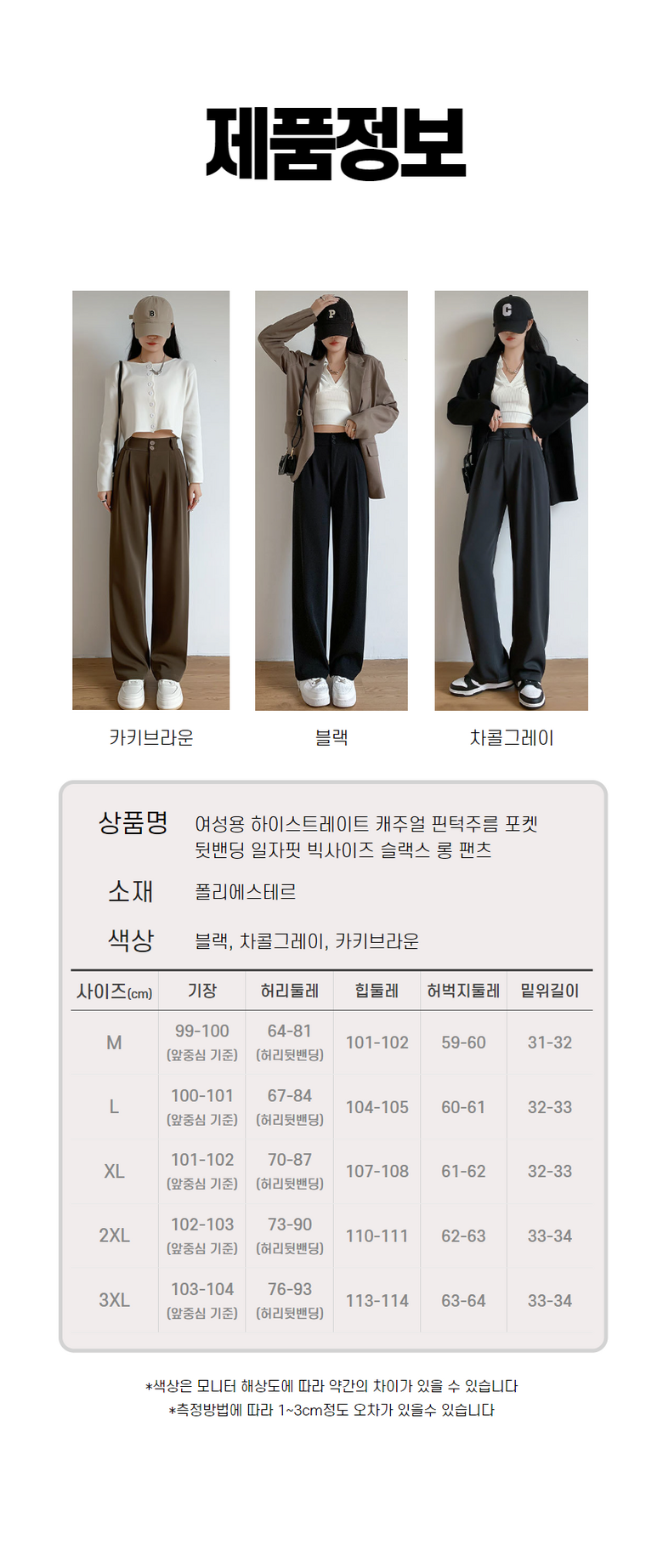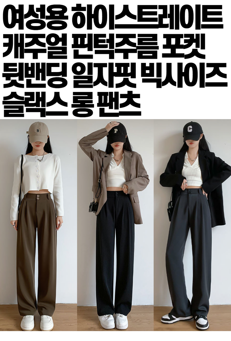 여성용 하이스트레이트 캐주얼 핀턱주름 포켓 뒷밴딩 일자핏 빅사이즈 슬랙스 롱 팬츠