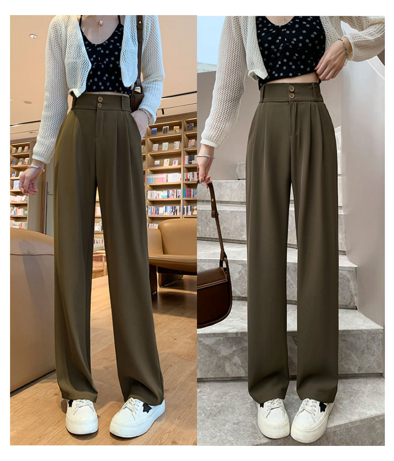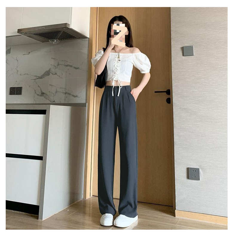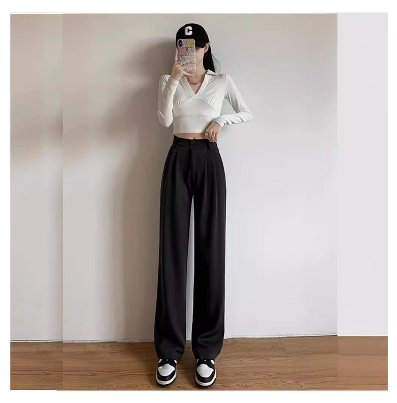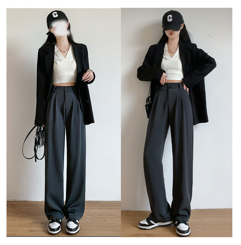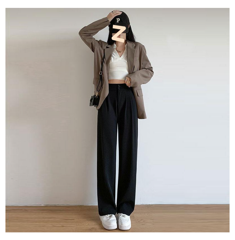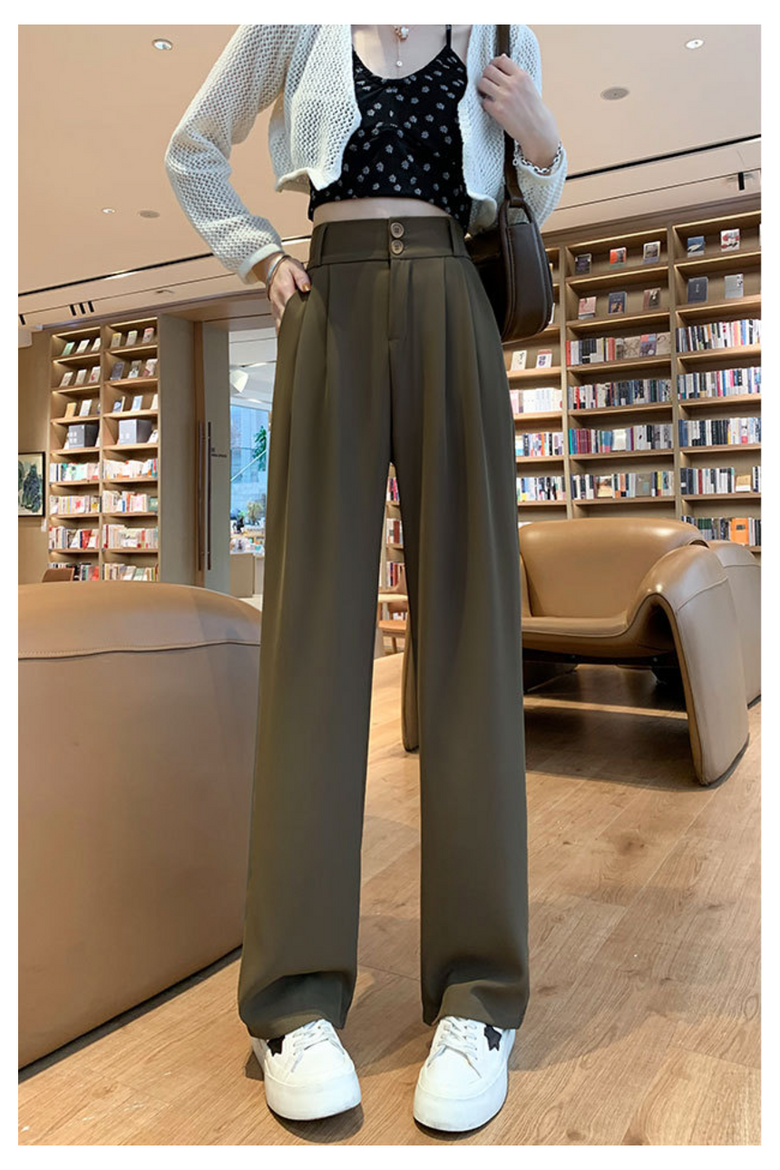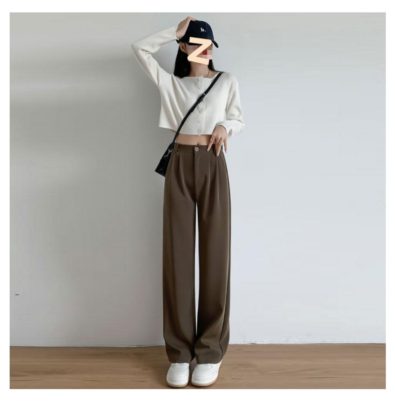 여성용 하이스트레이트 캐주얼 핀턱주름 포켓 뒷밴딩 일자핏 빅사이즈 슬랙스 롱 팬츠