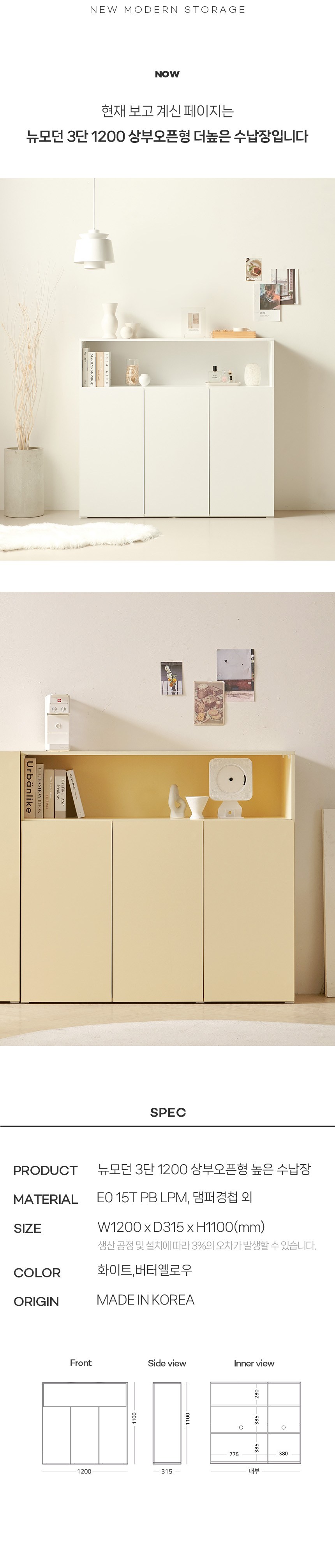 | 품명 | 뉴모던 3단 1200 키 높은 수납장 상부오픈형 LPM 선반장 일반형 방문설치 | KC 인증정보 | 해당없음 |