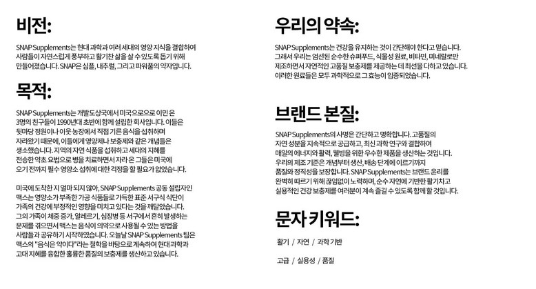 Snap Supplements에서는 귀하의 건강을 최적화하는 것이 심플해야 한다고 믿습니다. 이것이 바로 우리가 최적의 건강에 대한 영향과 결과를 위해 제조한 가장 순수하고 신중하게 선택된 슈퍼푸드, 식물, 비타민, 미네랄만을 사용하여 만든 천연 고품질 보충제를 제공하기 위해 최선을 다하는 이유입니다.